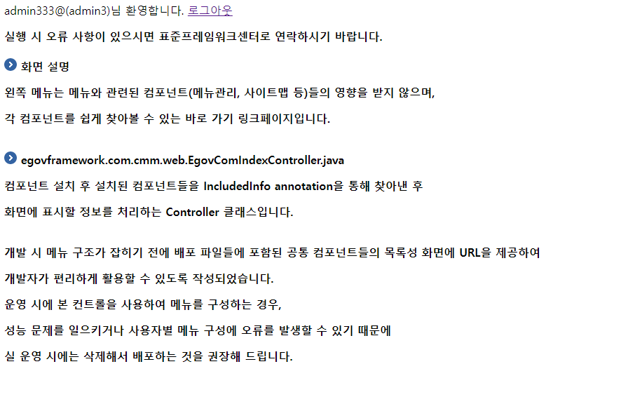로그인 하고싶은 ESNTL_ID의 권한을 02번으로 바꿔주니 로그인에 성공해서 페이지가 넘어갔다.
