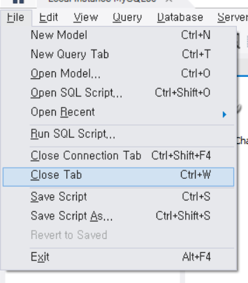 왼쪽 위에 file에서 close tab을 클릭하면 해당 탭이 닫히게 된다.
