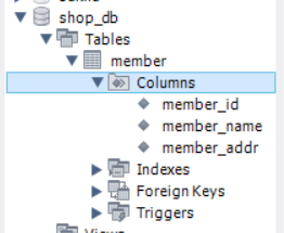 그럼 오른쪽 shop_db에 테이블 member가 생겨있다.