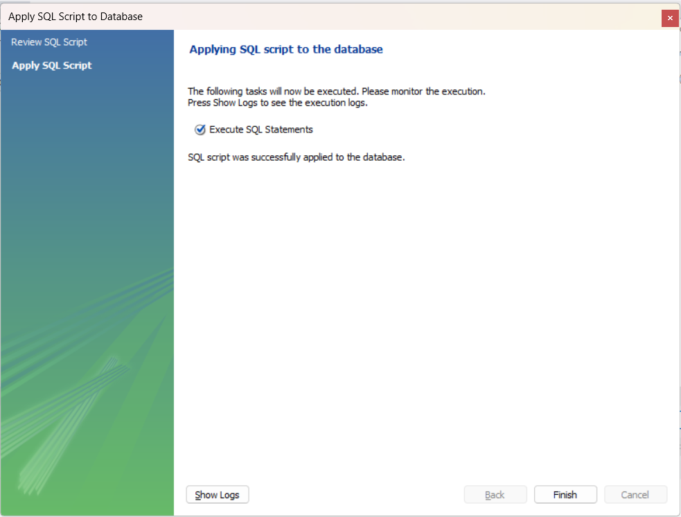 그럼 이렇게 정상적으로 db가 만들어졌다고 뜨고 finish를 클릭하면