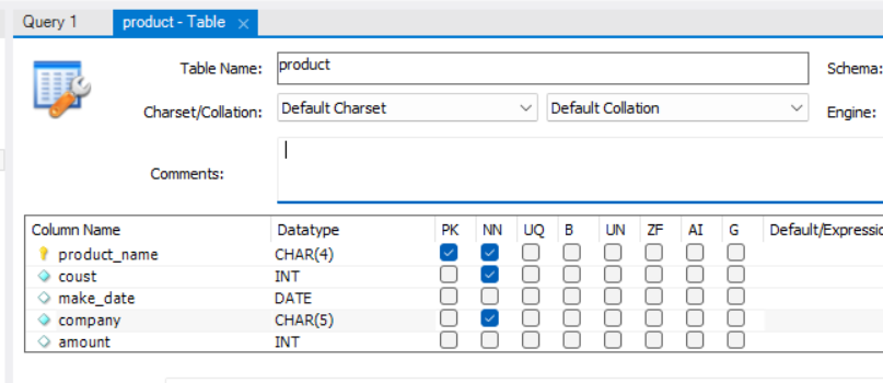 pk는 프라이머리키라는 의미이고 nn은 not null을 의미하며 위에서 not null을 yes로 했기 때문에 체크해준다.
