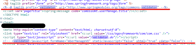 내가 사용하는 jsp 상단을 보면 빨간색 줄의 validator가 있을 것이다. 얘네를 주석처리.